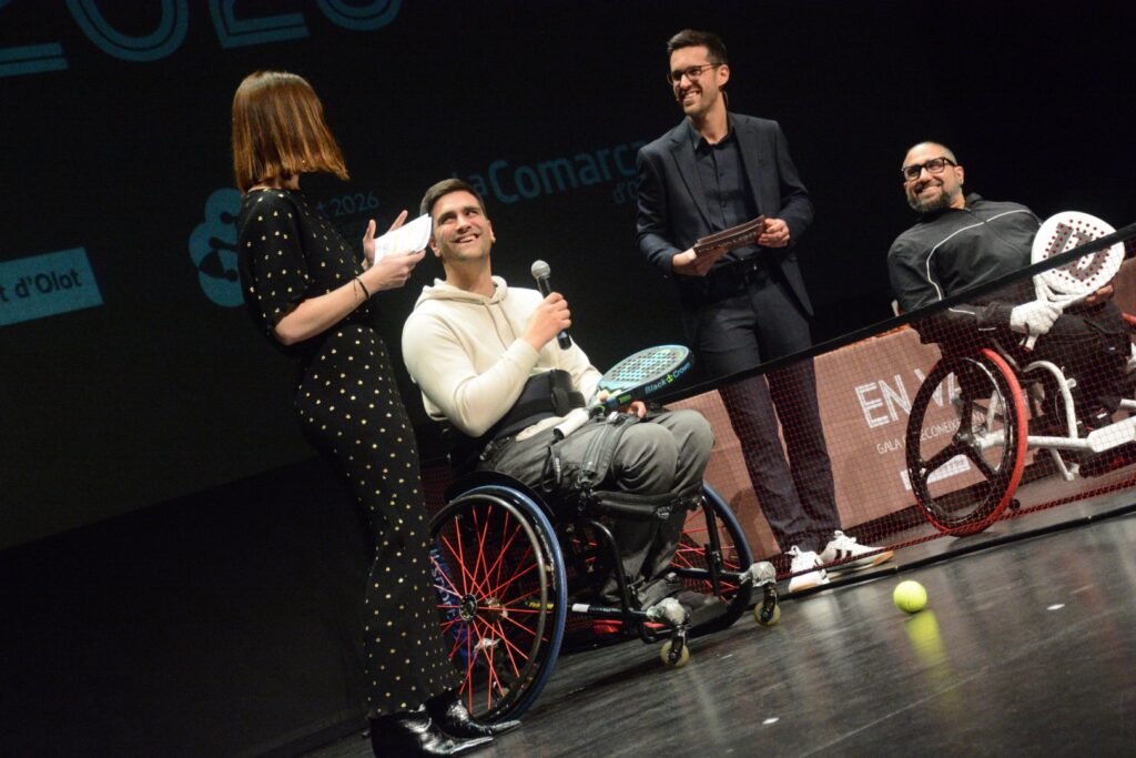 La cerimònia ha arrencat amb una emotiva exhibició de pàdel adaptat a càrrec de Pau Martín, campió de Catalunya i entrenador del Vòlei Olot, que ha posat de manifest el compromís de la ciutat amb un esport inclusiu i accessible.