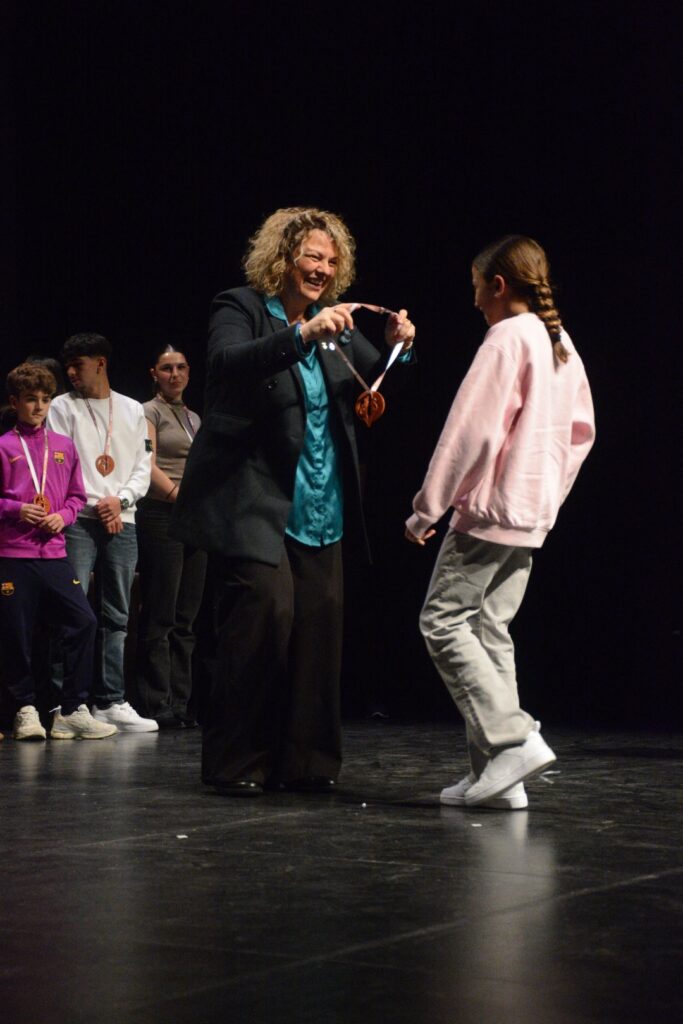 Totes elles i ells han rebut la medalla commemorativa exclusiva dissenyada per l’artista Rosa Serra, que enguany s’ha creat amb el color Mocha Mousse, el color Pantone 2025. Tant Rosa Serra com els màxims representants internacionals del sector esportiu de la demarcació de Girona han assistit a l’acte que ha omplert de gom a gom el Teatre Principal d’Olot.