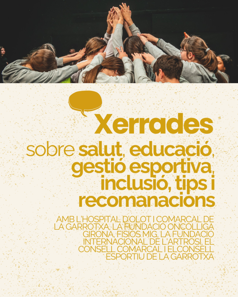 Aquestes sessions volen generar reflexió i debat al voltant de l’esport des d’una mirada transversal i comptaran amb la col·laboració i assistència de personalitats rellevants, ciutadans i ciutadanes i institucions del territori. La primera de les 9 previstes s’ha realitzat aquest dimarts 13 de gener entorn els ‘Bons tractes i la prevenció de la violència en l’esport’ i la següent serà el dijous 5 de febrer a les 18.30 h a la Sala Magma de l’Espai Cràter amb el suport de l’Hospital d’Olot i Comarcal de la Garrotxa, l’Oncolliga i Fisios mig: ‘L’activitat física i l’exercici físic en el procés oncològic’ de la mà de la psicooncòloga Berta Galindo, l’entrenador personal Aniol Mangas i la doctora de rehabilitació Mireia Monago.