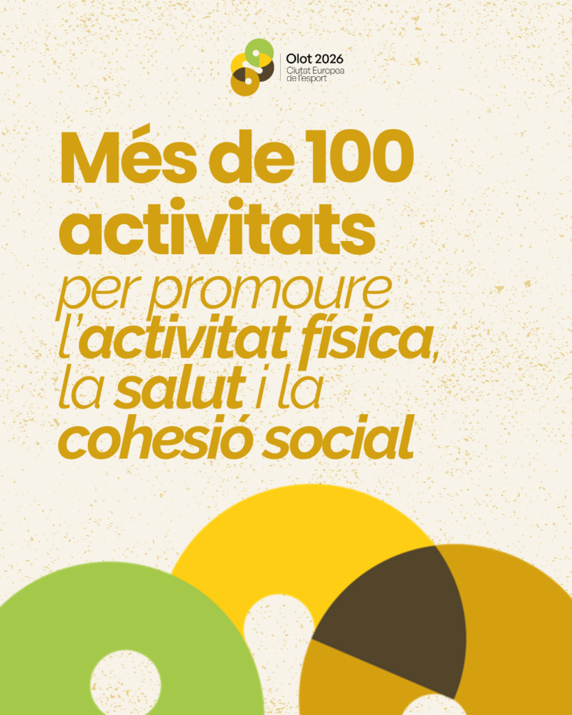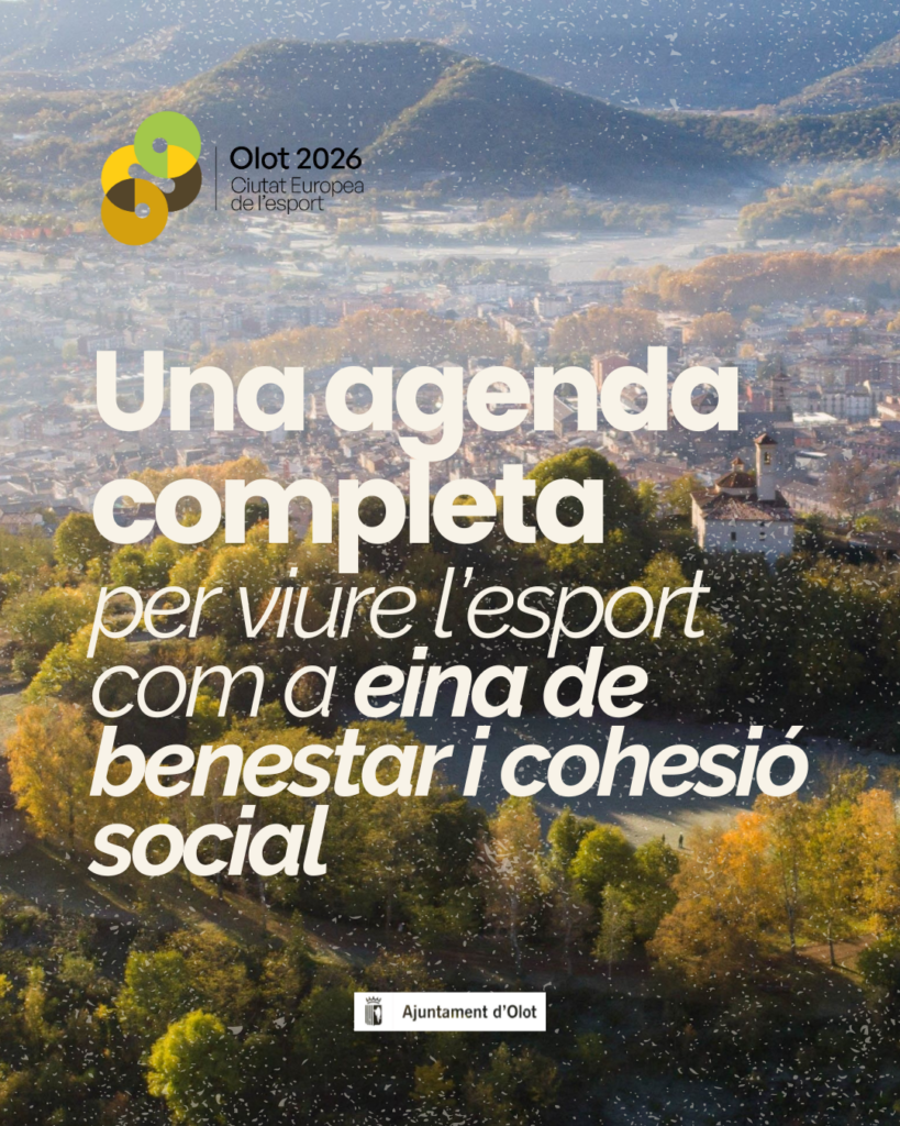 Publicada la primera agenda d’activitats d’Olot, Ciutat Europea de l’Esport 2026. Enguany, la capital de la Garrotxa commemora aquesta distinció amb més d’un centenar de propostes i activitats esportives repartides al llarg de l’any i pensades per promoure l’activitat física, la salut i la cohesió social entre tota la ciutadania.