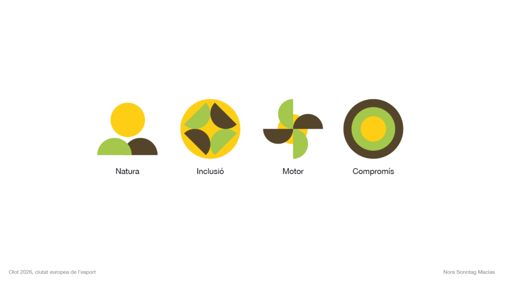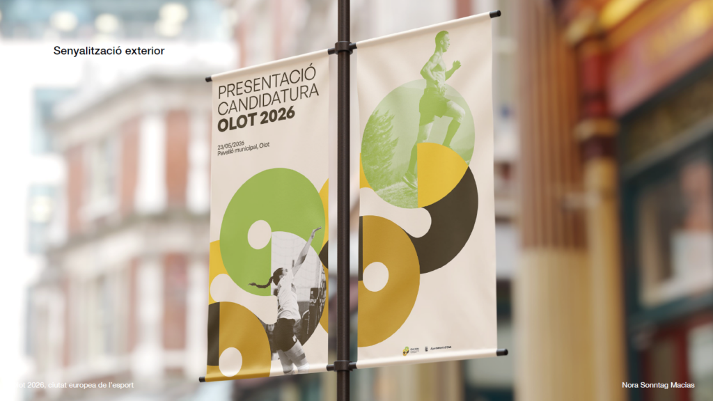 La candidatura d’Olot com a Ciutat Europea de l’Esport 2026 ja compta amb una identitat visual única. La proposta gràfica és obra de Nora Sonntag, alumna de l’Escola Superior de Disseny i d’Arts Plàstiques de Catalunya, Campus Olot, que ha estat seleccionada a través d’un concurs. L’Ajuntament d’Olot està treballant per presentar properament la candidatura oficial perquè Olot pugui rebre el títol de Ciutat Europea de l’Esport 2026.